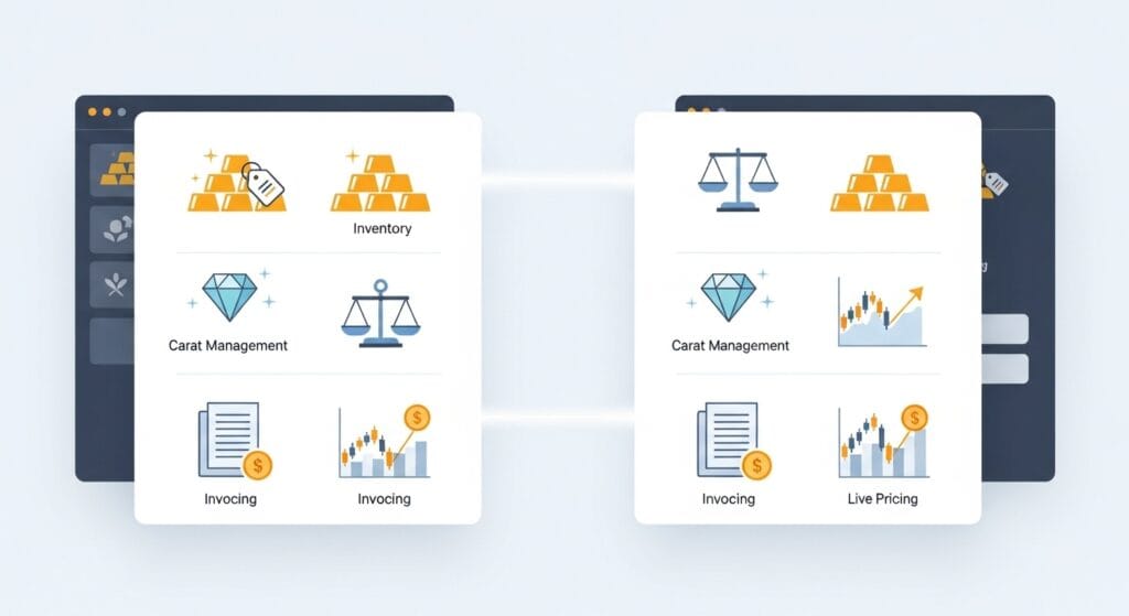 مقارنة بين برامج المحاسبة العامة ونظام ديسم للذهب والمجوهرات
